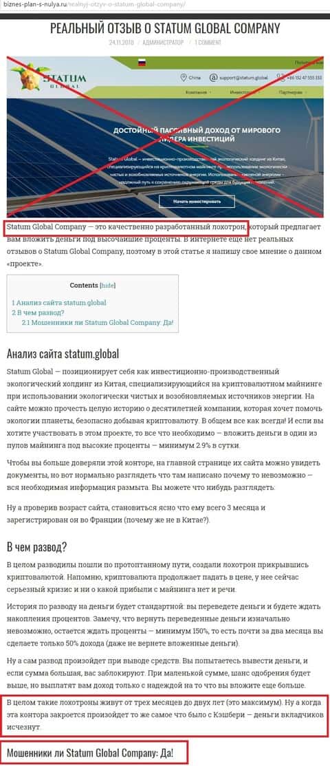 Становясь клиентом крипто-конторы СтатумГлобал, пользователь сети Интернет, обязан понимать, что дело иметь он будет с очередным никем не регулируемым интернет-проектом кухонного происхождения. И это как минимум. Фактически, связываясь с фондом Статум, человек вступает во взаимоотношения с явным мошенническим сайтом. По другому контору Statum Global просто не назовешь. Ведь регистрация на территории Гонконга еще не о чем не говорит. И уж тем более это не дает право организации обслуживать собственных клиентов, заявляя о каких-либо гарантиях и безопасности инвестирования.