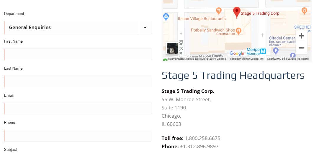Как связаться с дилинговой конторы Stage 5 Trading?