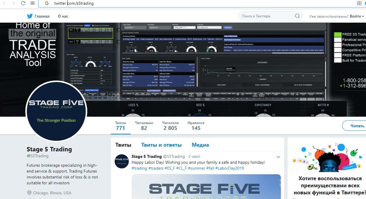 За все время существования, страница в Твиттере мошеннической компании Stage 5 Trading, обзавелась всего-то навсего 2800 подписчиками. Результат ужасный и понятно за счет каких лохов контора еще работает - без кидалова тут никак. Обходите стороной этот адрес twitter com/s5trading