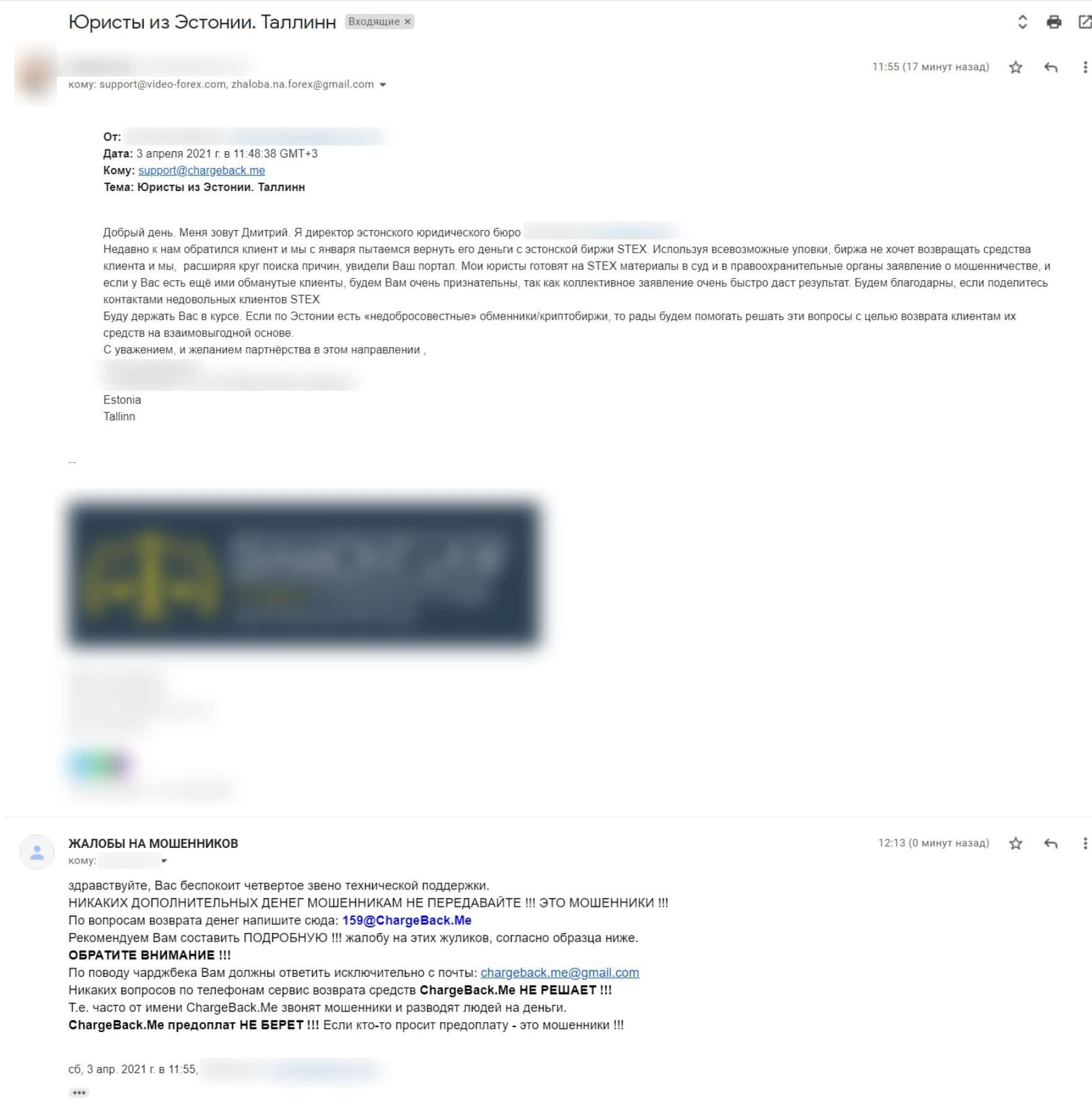 - Перечень контактов мошенников Стекс, по которым с ними можно якобы связаться
