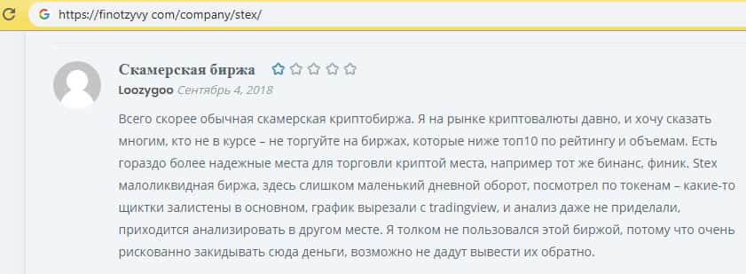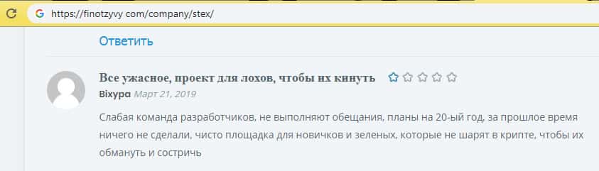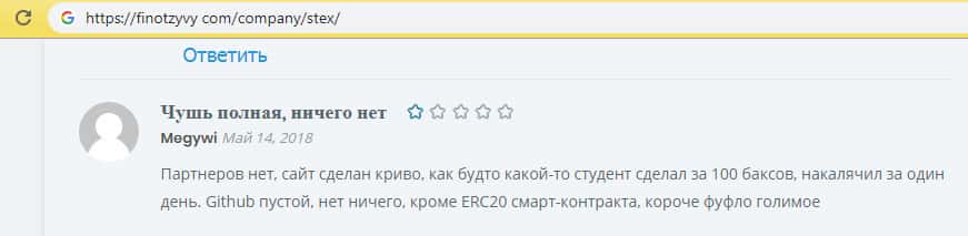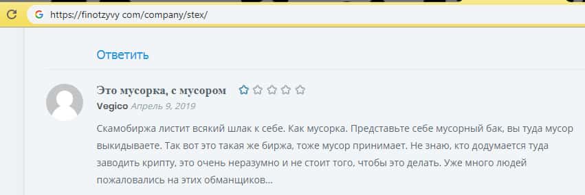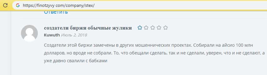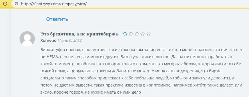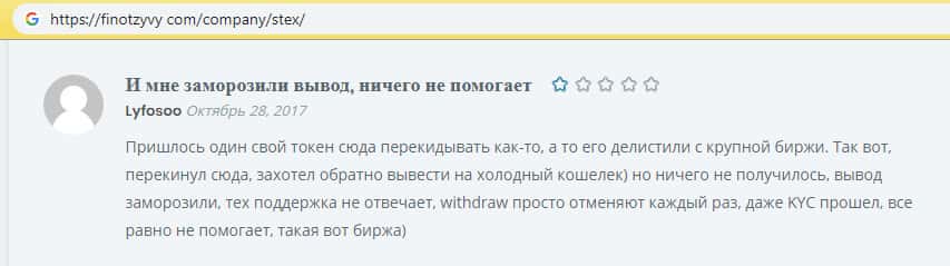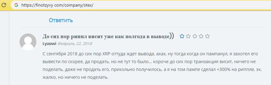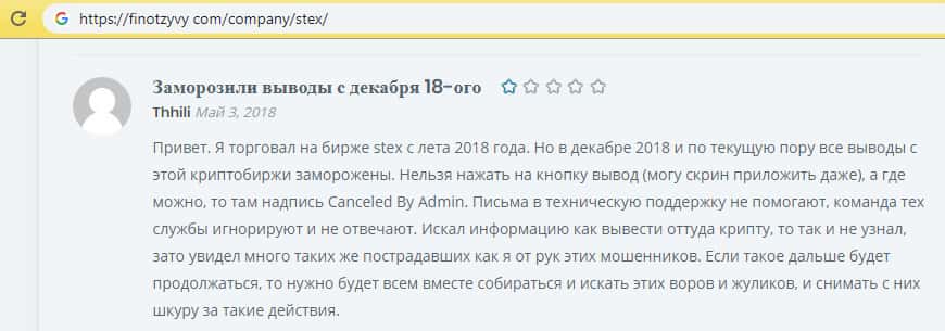 - Отзыв о худшей бирже Stex от недовольного клиента на одном из интернет-порталов