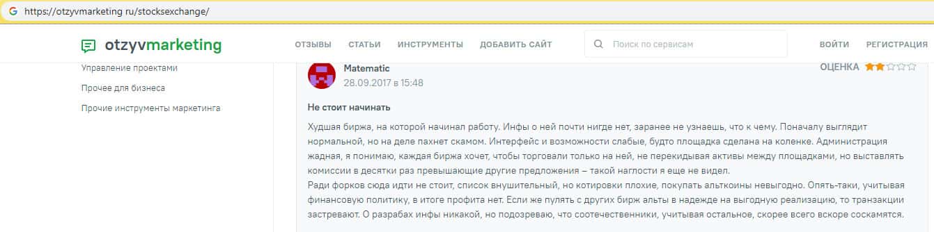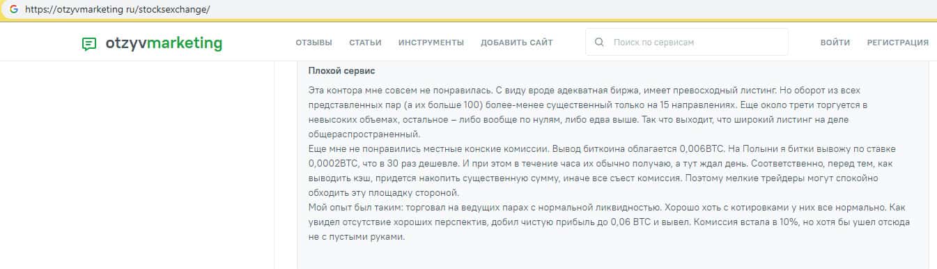 Отзыв о худшей бирже Stex от недовольного клиента на одном из интернет-порталов