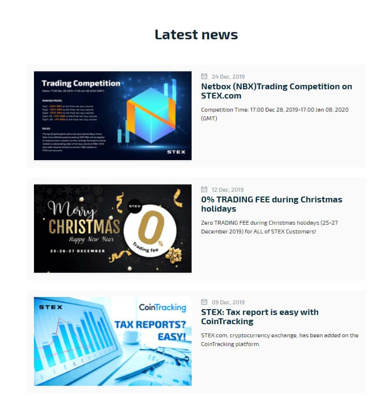 После на сайте у аферистов Stex имеется довольно типичные и банальные разделы с последними новостями, которые уже давно устарели, однако у таких лохотронов как Стекс они все еще пользуются популярностью. Стоит отметить и довольно непродуманное расположение и цвета, что снова говорит об определенной халтуре при создании сайта жуликов Stex.