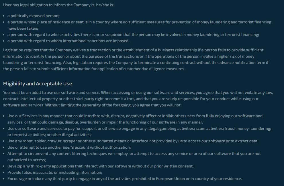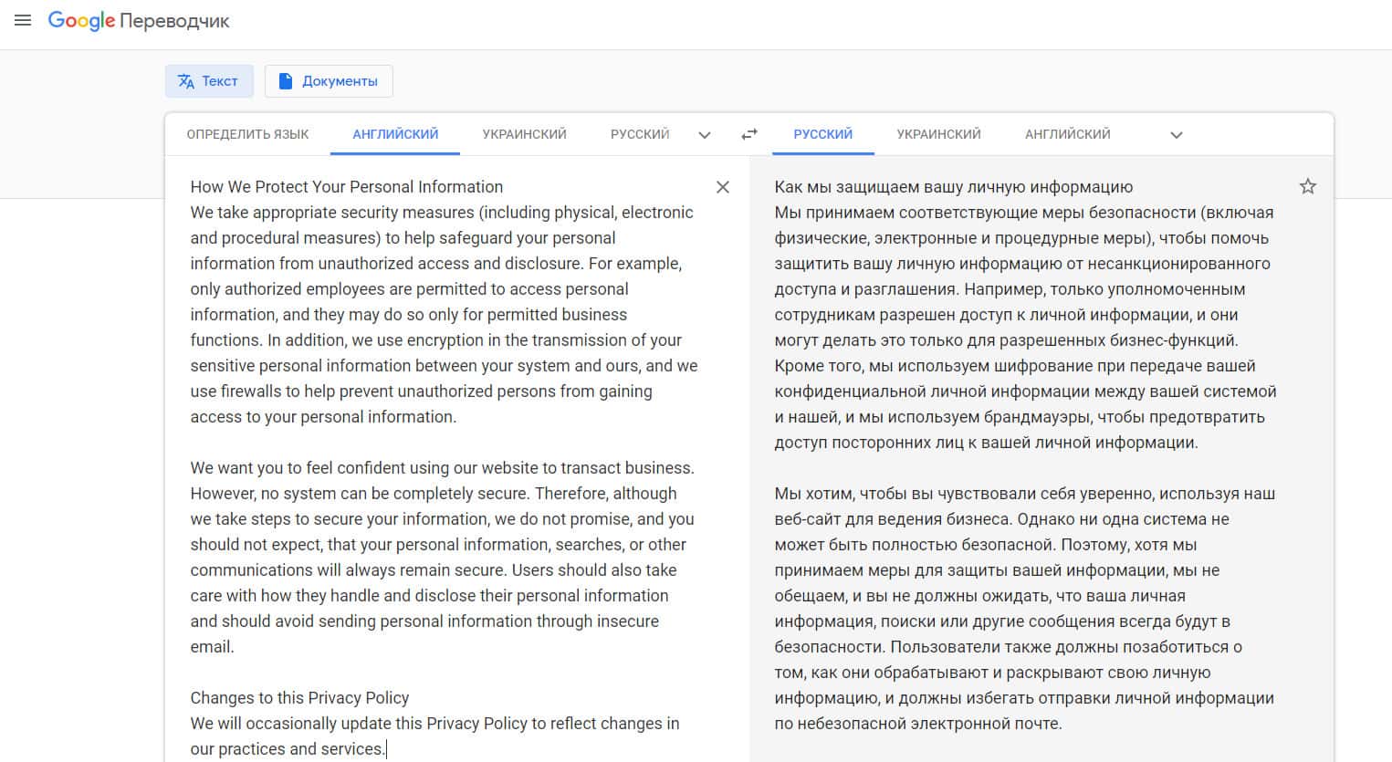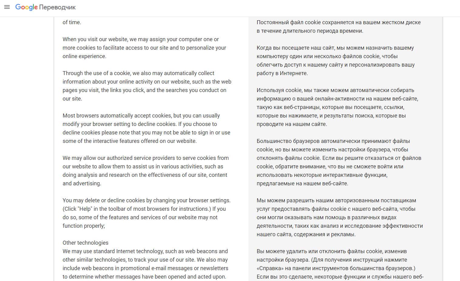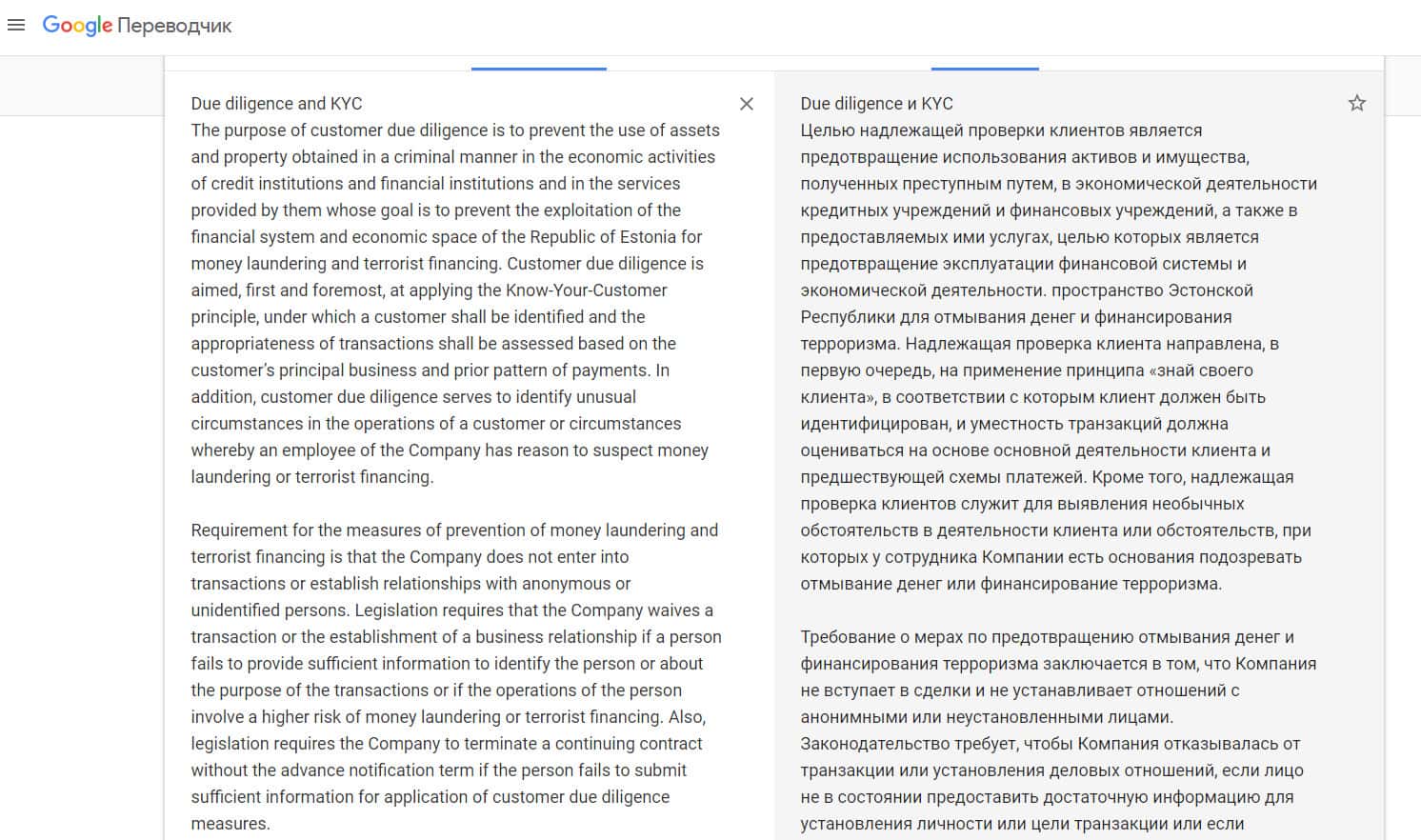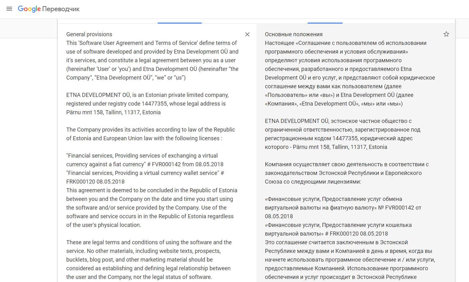 Подвальная контора не предусмотрела русификации, и даже не организовала автоматический перевод, поэтому пользователи могут прочитать документ о политике конфиденциальности компании Стекс только воспользовавшись переводчиком. На изображении ниже представлен перевод раздела условий политики жуликов Stex.