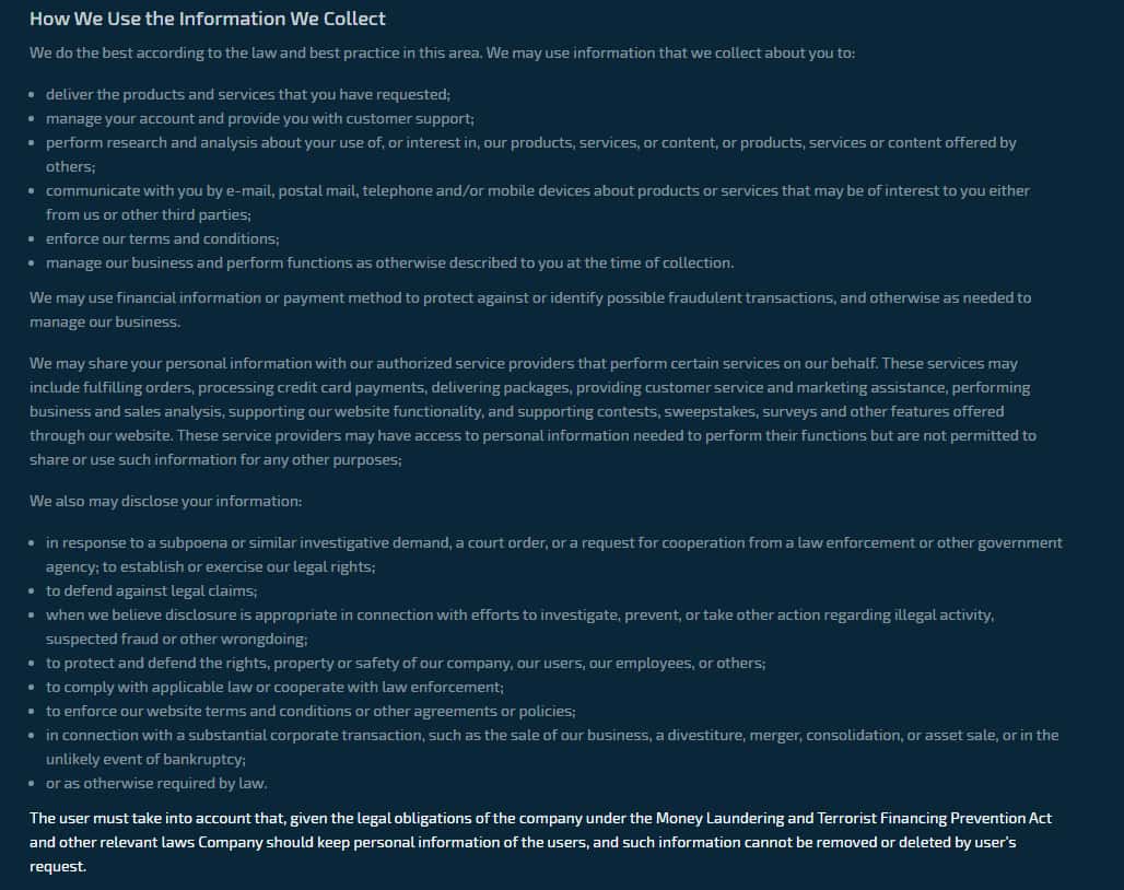 После в политике конфиденциальности у аферистов Стекс следует условие о том, что мошенники Stex по своему личному усмотрению могут передавать личные и персональные данные наивной клиентуры третьим лицам. На изображении, расположенном ниже, вы можете увидеть данные раздел политики конфиденциальности жулья Stex.
