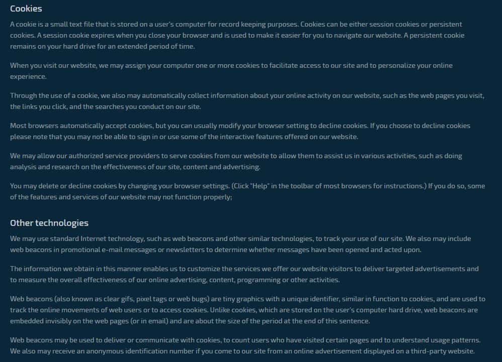 - Заманчивые условия политики конфиденциальности жуликов Стекс для лохов