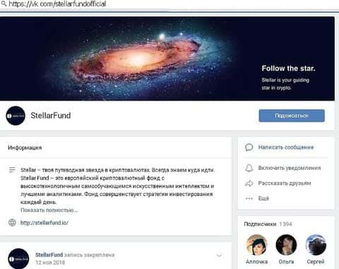 - Деятельность хайп-скаммеров StellarFund в соцсетях