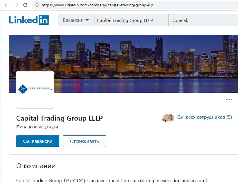 Помимо того, что пирамида CTG Trading обманывает своих доверчивых вкладчиков на своём сайте, так они уже дотянулись до социальной сети linkedin com. Но у них там это к счастью плохо получается и людей которые им доверили свои инвестиции очень мало. Не доверяйте обманщикам свои деньги, так как они у вас заберут последнее.