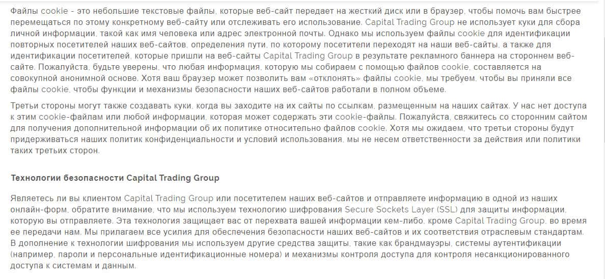 Наверное один из самых кричащих разделов на сайте аферистов CTG Trading касающийся безопасности вкладов и работы с активами. Подвальная кухня которая не сделала ни одной официальной бумаги с какими либо лицензиями и распоряжениями, говорит о каких то призрачных и лживых обещаниях мнимой безопасности вклада своего трейдера.
