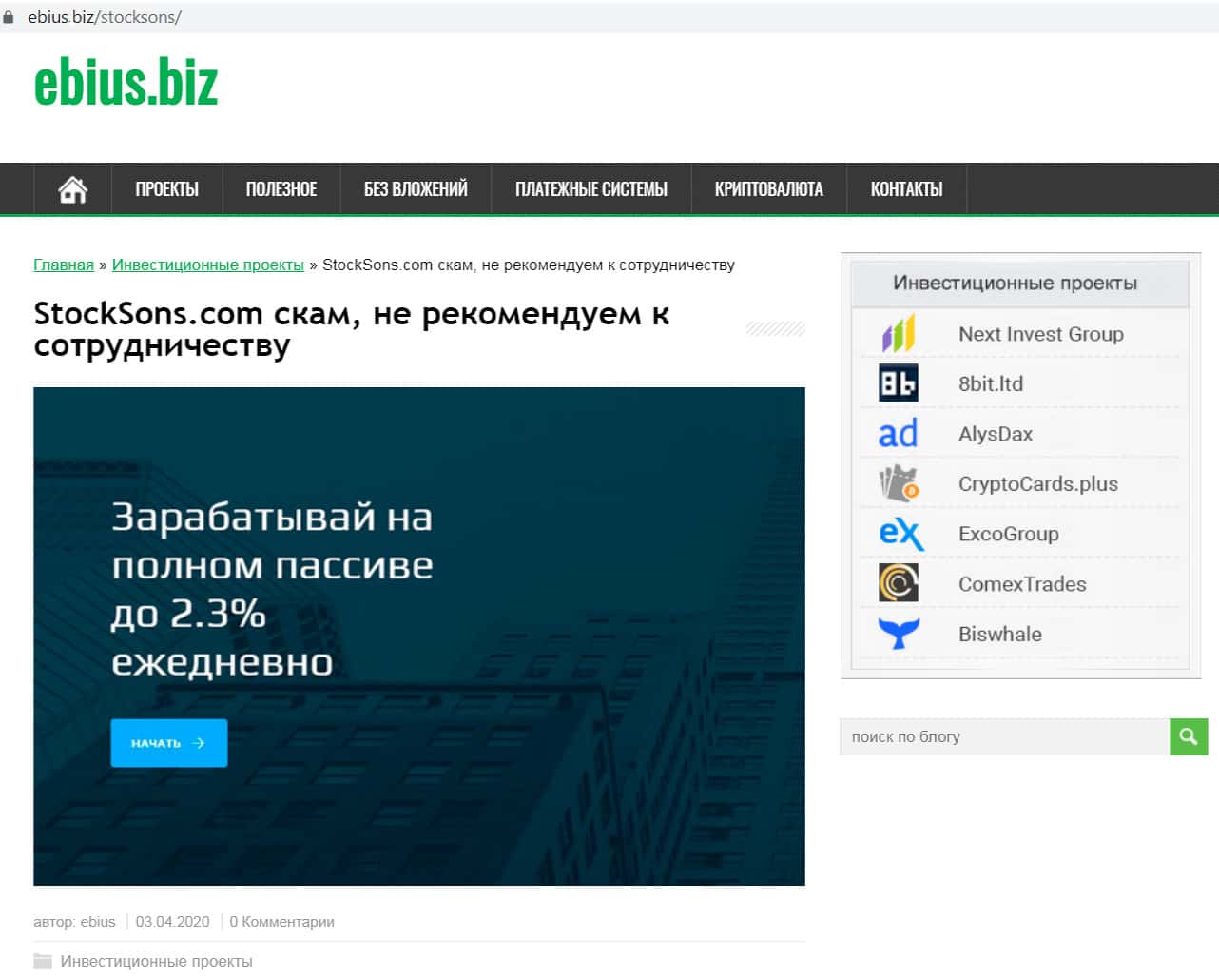 Компания StockSonc мошенники по мнению ресурса ebius biz