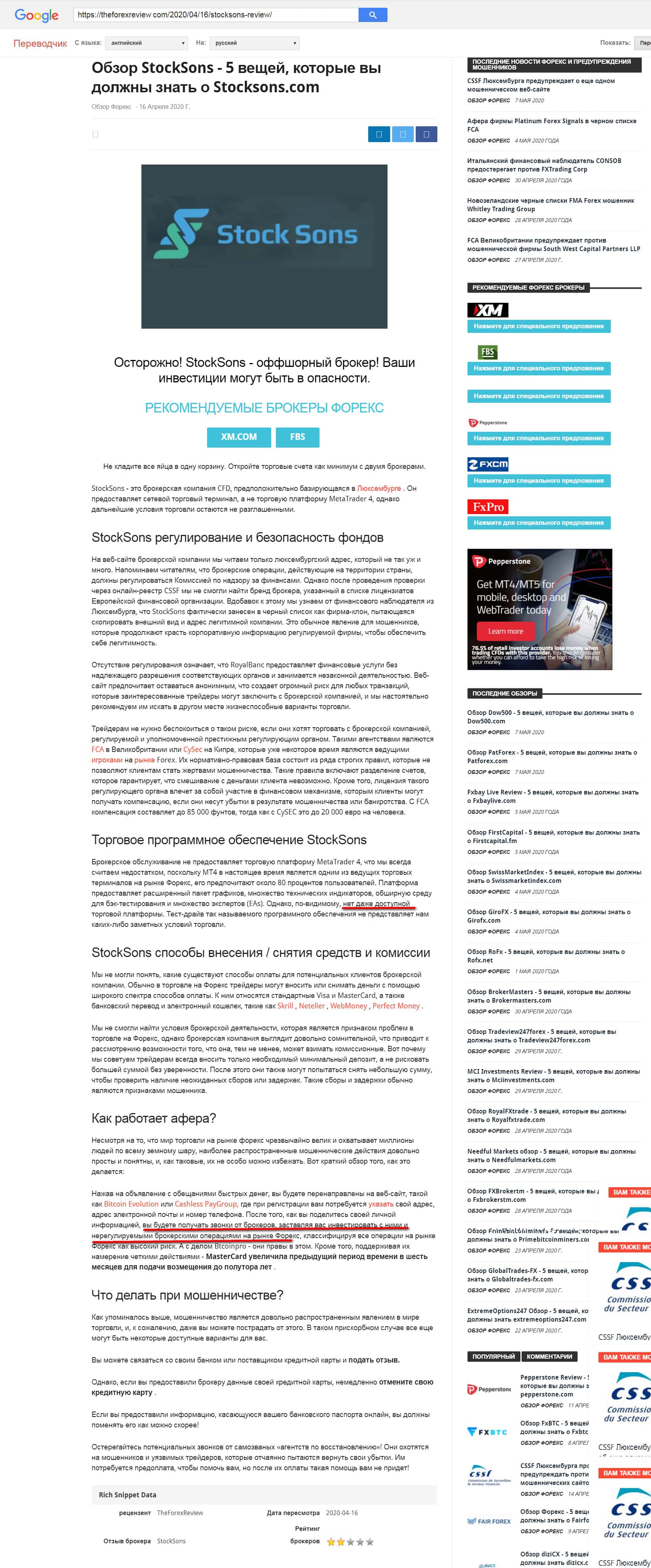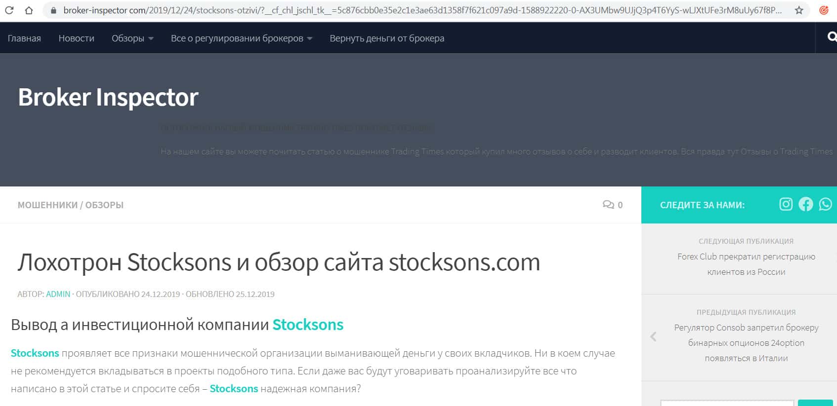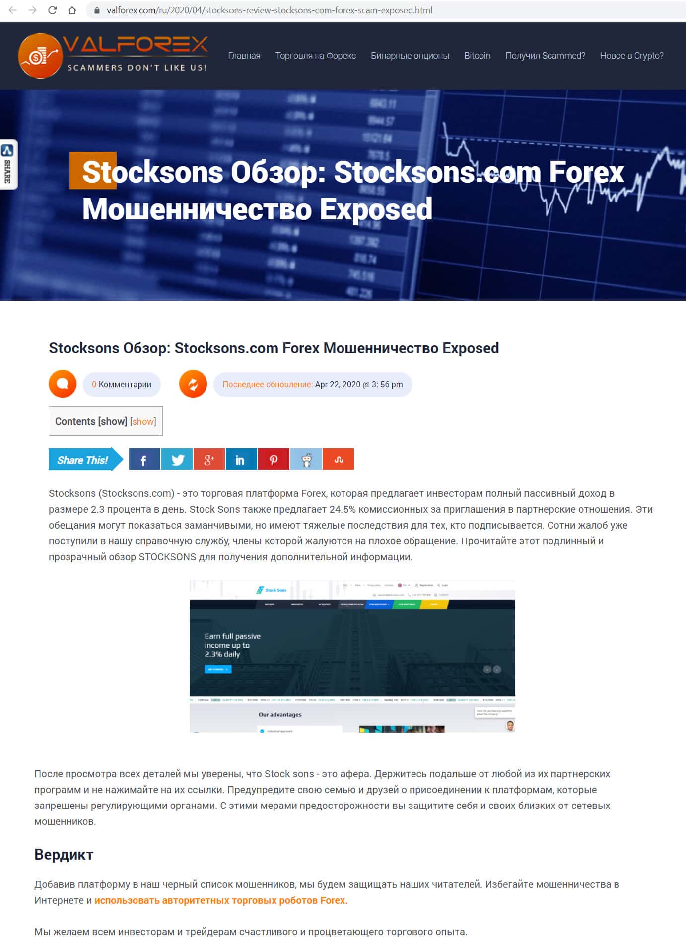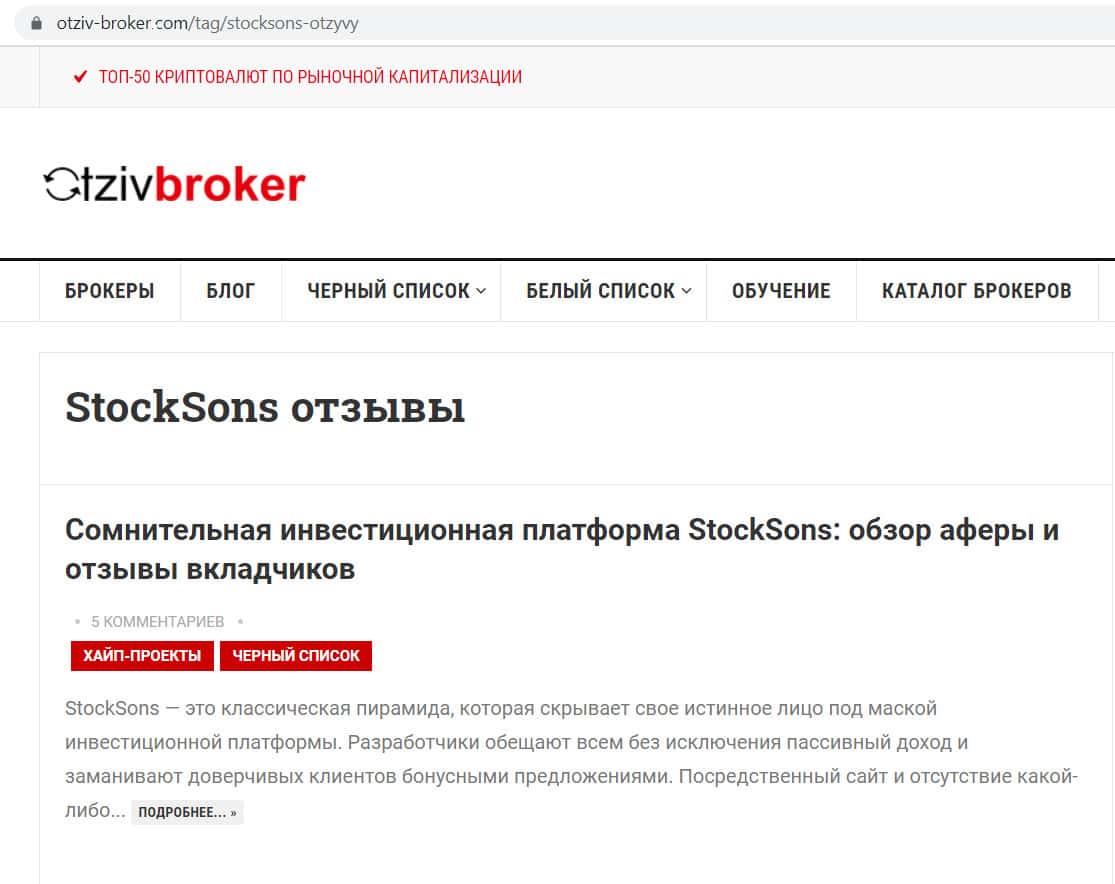 - Очередная статья в сети интернет с сайта blacklistbroker com о scam-деятельности StockSons