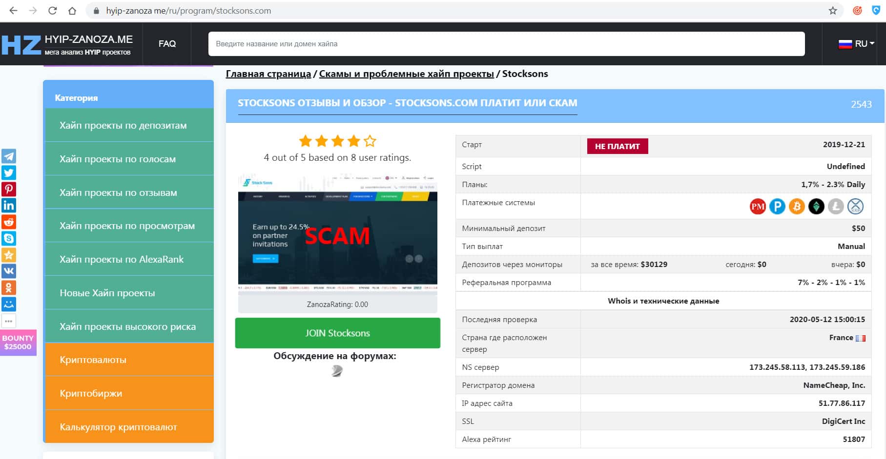 Ресурс о хайп проектах на сайте bestinvestor ru предупреждает о том, что деньги Сток Санс не выплачивает