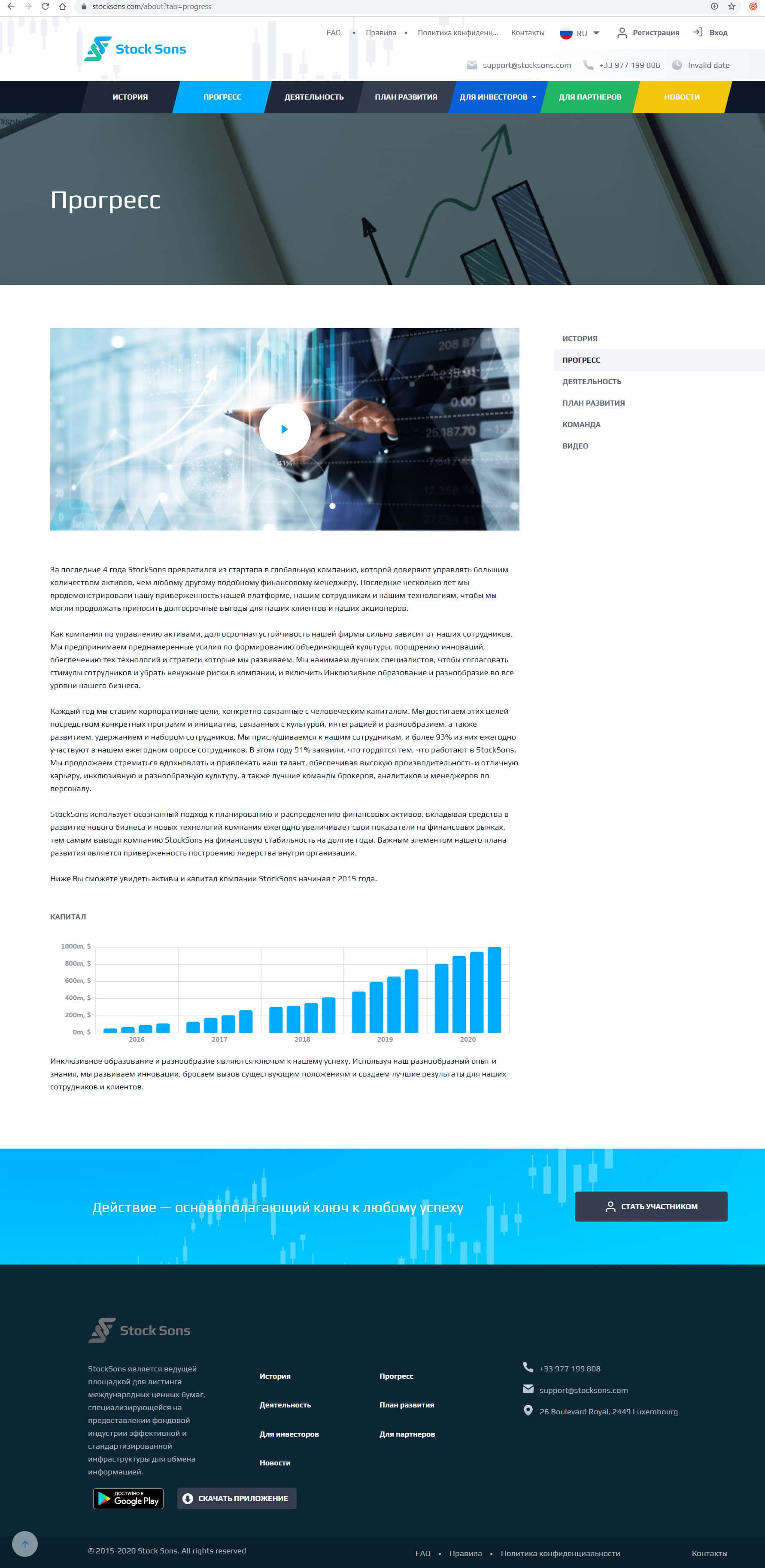Следующим разделом они описали прогресс в развитии их компании, который так же вызывает большие сомнения, так как уж очень все гладко у них получается. Скорее всего они выдают желаемое за действительность. Не позволяйте Вас обманывать, читайте и изучайте внимательно инфу о них.