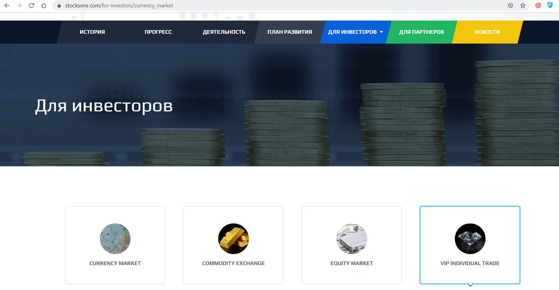 stocksons com - официальный интернет-ресурс лохотрона Stock Sons