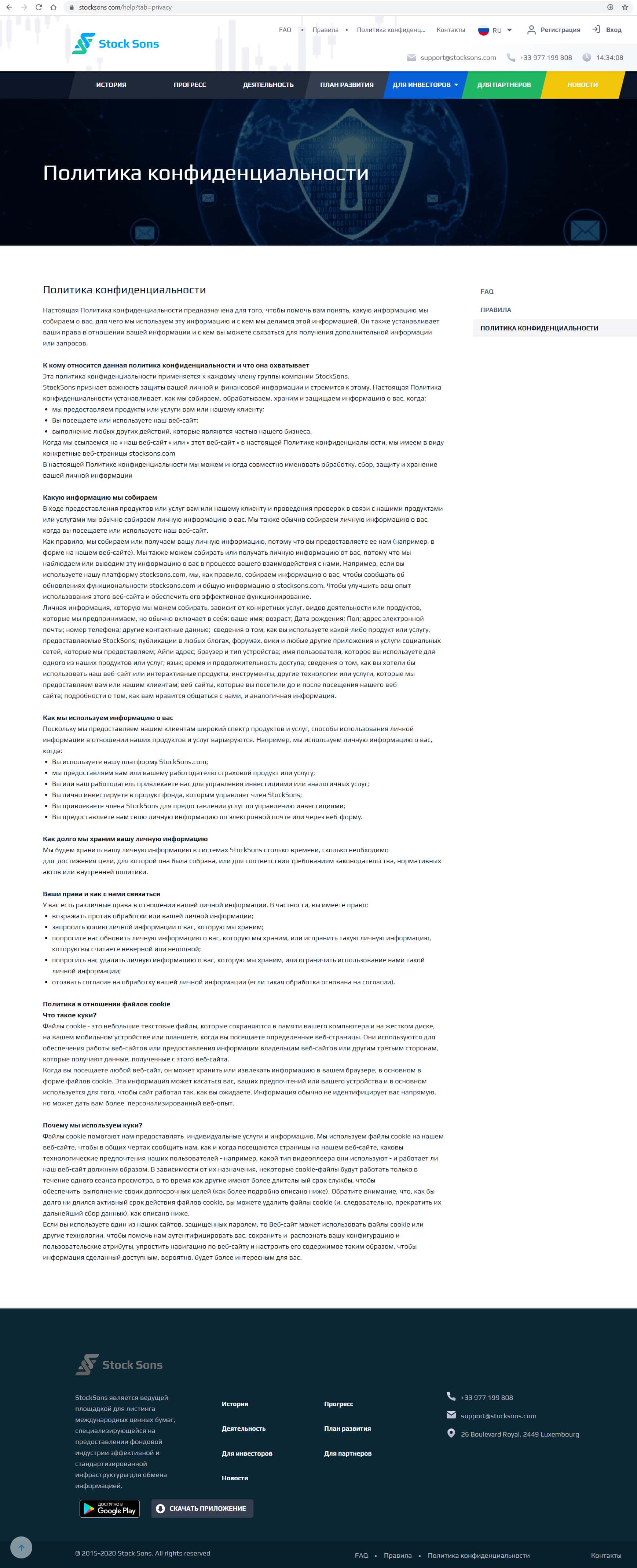 - Политика конфиденциальности компании Stock Sons не защищает личную информацию клиентов