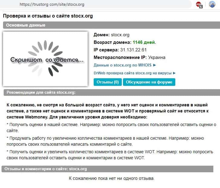 - Официальный сайт компании Stocx Org (Stocx Biz) имеет довольно низкий рейтинг доверия