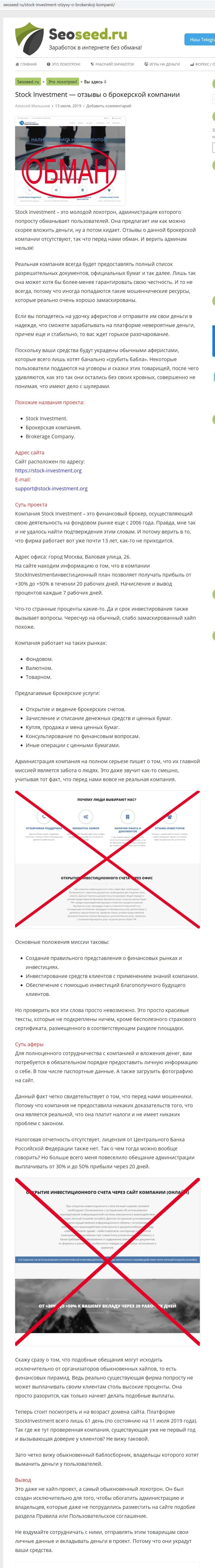 Статья на сайте seoseed ru сообщает читателям, что создатели проекта Сток Инвестментс Лимитед не предоставили никаких доказательств того, что они реально существуют.