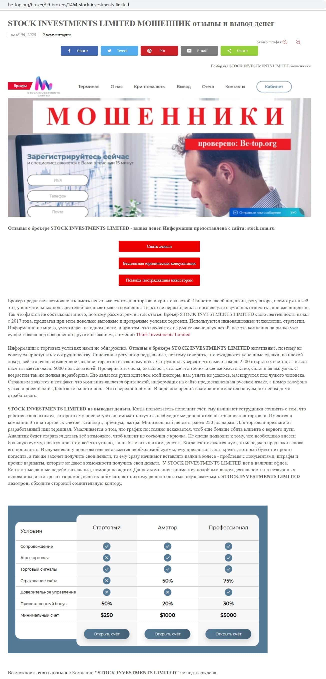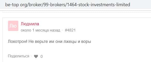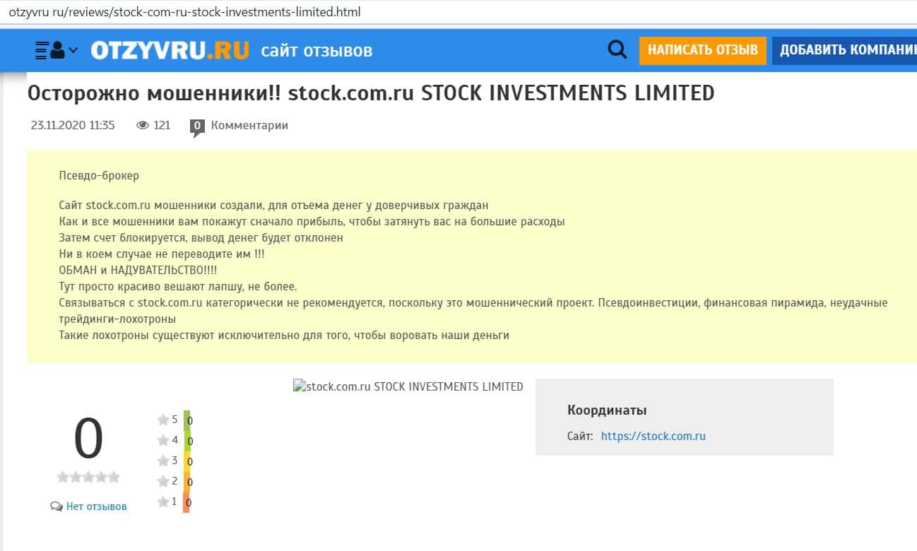 Отзывы о жуликах Сток Инвестментс Лимитед из интернета