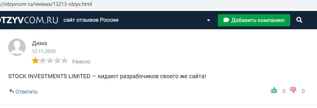 - Обзоры о Сток Инвестментс Лимитед, найденные в сети