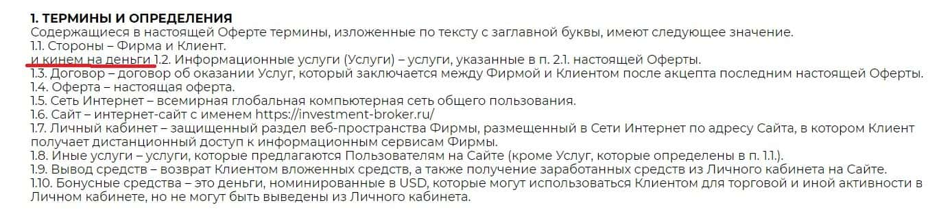 В первом разделе своего соглашения жулики Stock Investments Limited объявляют, что кидают клиентов на деньги. В буквальном смысле этого слова.