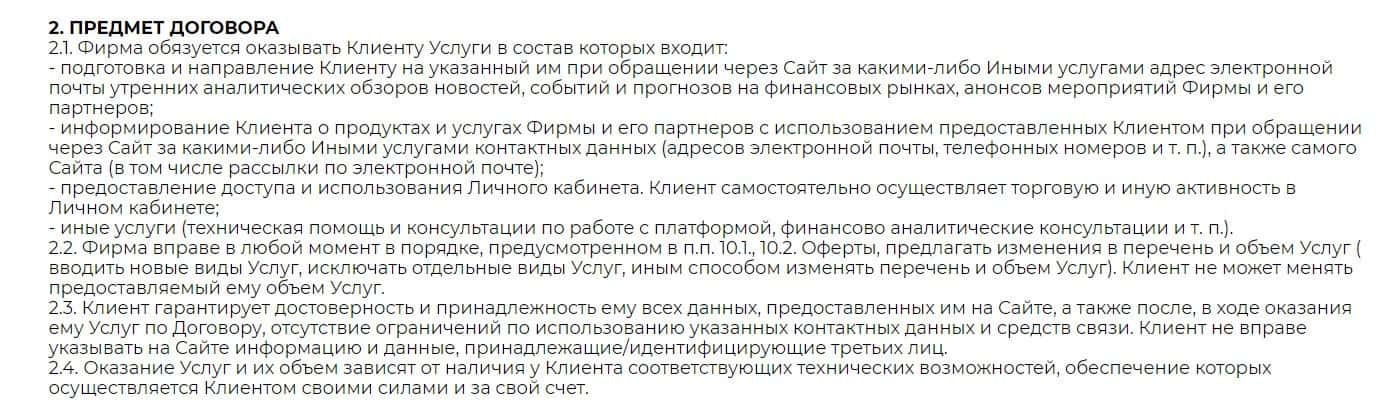Во втором разделе своего договора компания Stock Investments Limited описывает, что является предметом соглашения между клиентом и брокером.