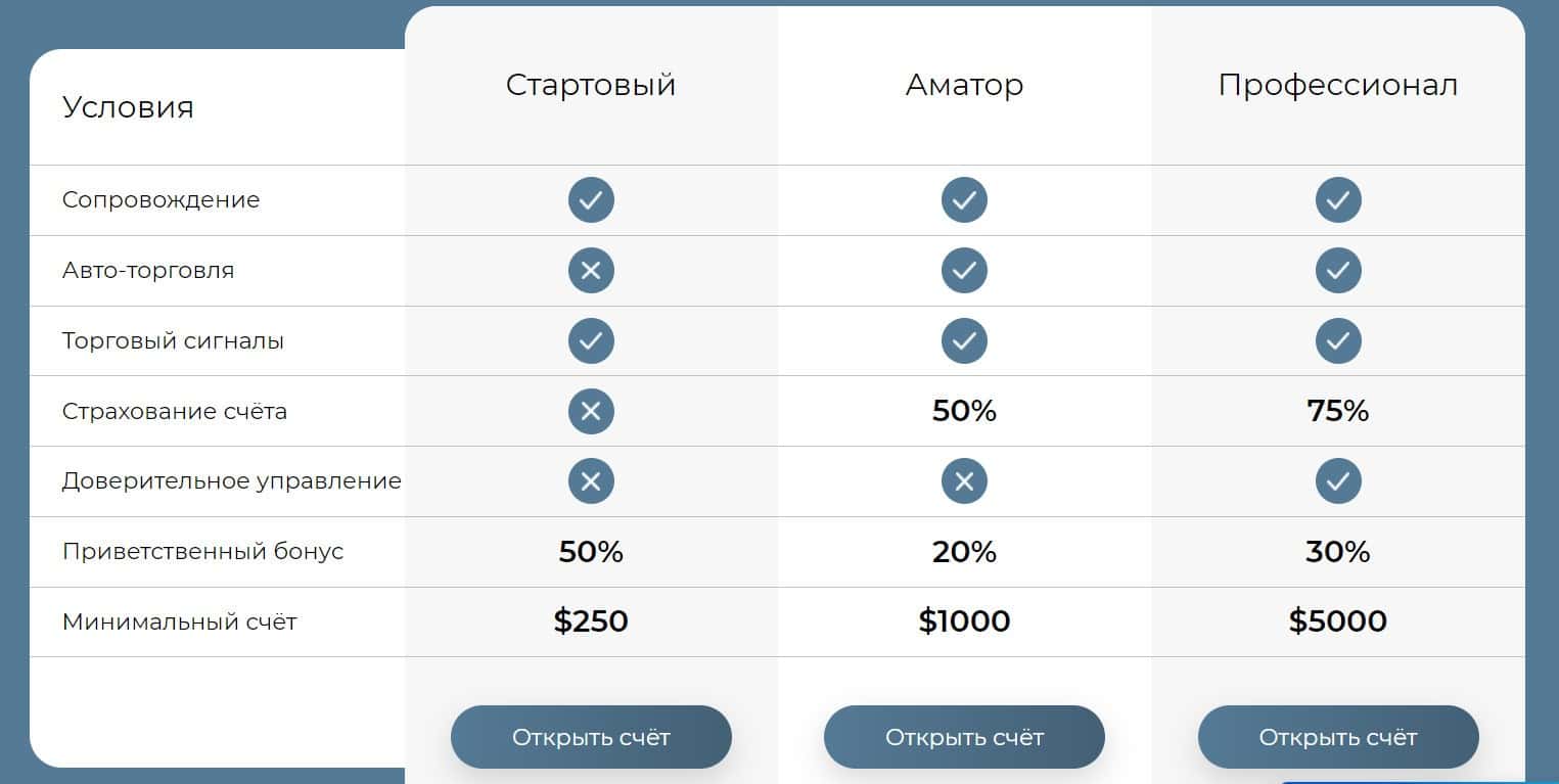 Типы счетов, которые предлагает контора Сток Инвестментс Лимитед, подтверждают, что это лохотрон, так как невозможно торговать на Форекс с балансом в 250 долларов.