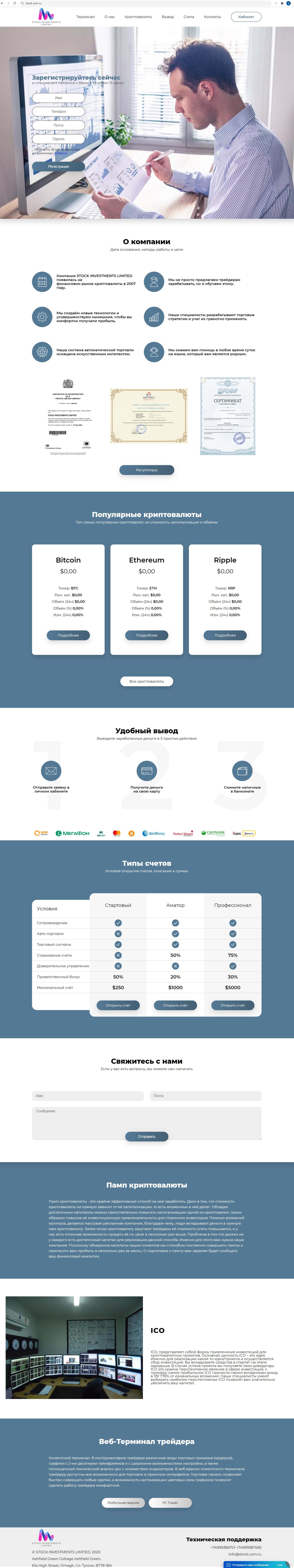 Сайт лжеброкера Сток Инвестментс Лимитед является дешевым одностраничником, на создание которого было потрачено минимальное количество средств и времени.