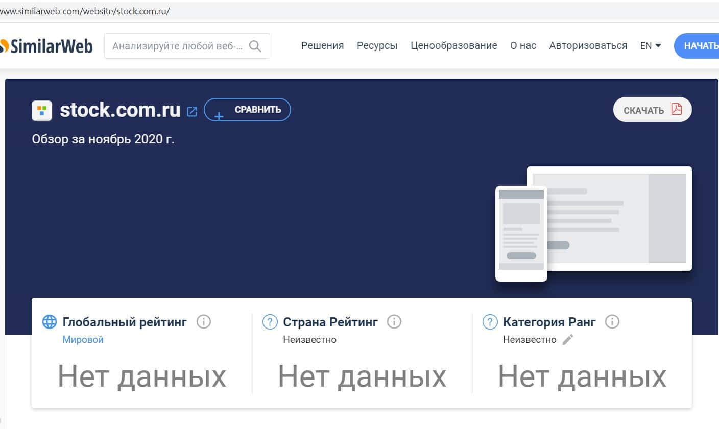 - Данные сервиса проверки трафика Симиларвеб о домене stock com ru