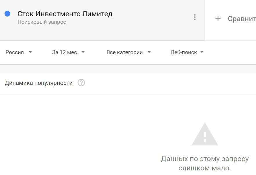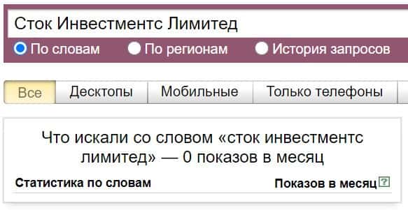 То же название на русском языке, но с пробелами "Сток Инвестментс Лимитед", пользователи также почти не искали в системе Гугл.