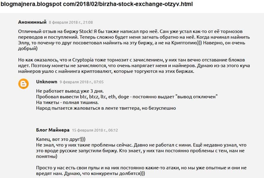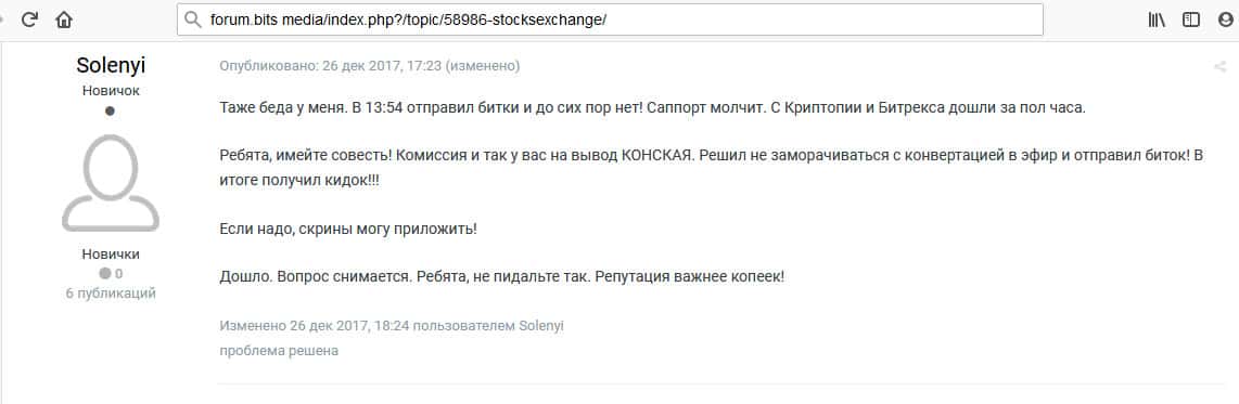 Опытные люди, которые уже давно так или иначе занимаются криптовалютой, говорят о том, что впервые слышат о такой бирже, как Stocks Exchange. И что лучше такими непроверенными ресурсами вообще не пользоваться. И они правы, потому что это в конце концов оборачивается потерей денег для вас.