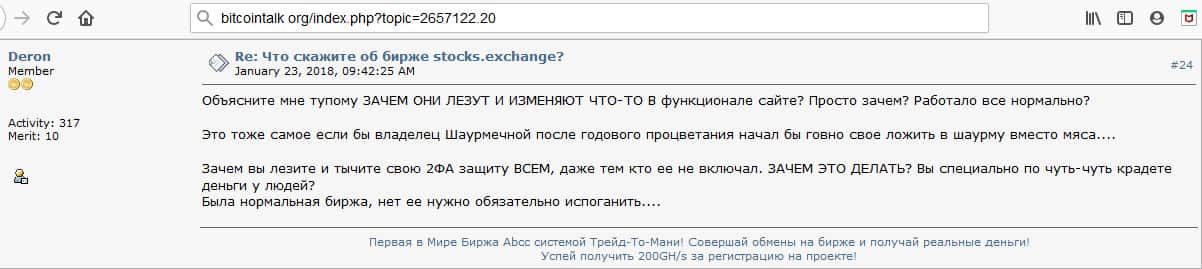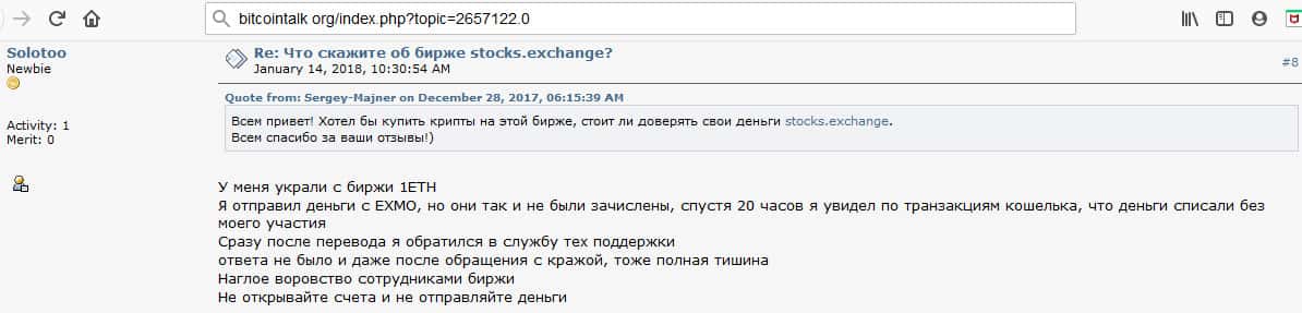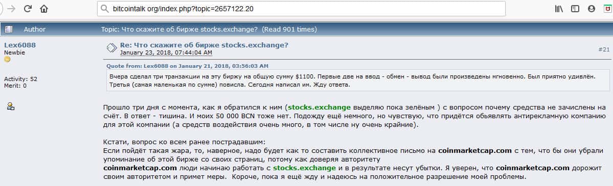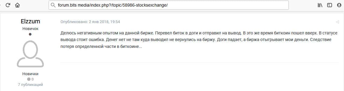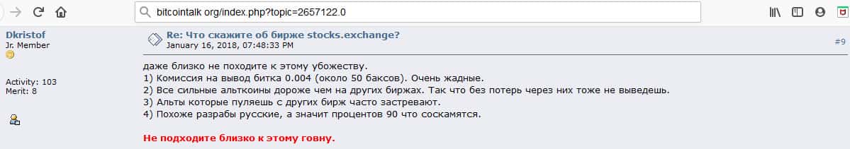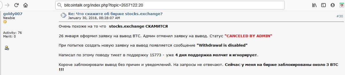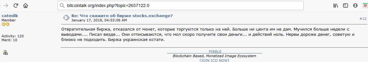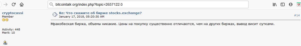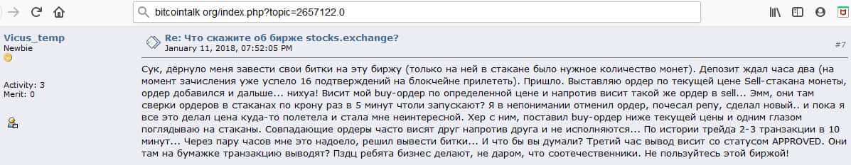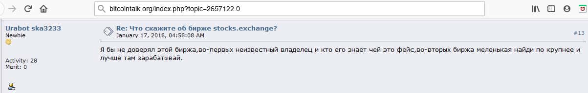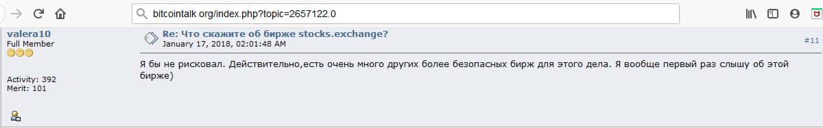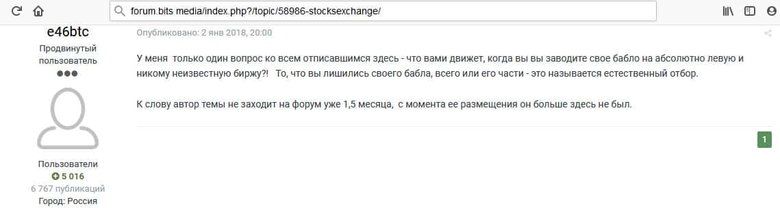 - Очередной инвестор говорит о том, что Stocks Exchange - это подозрительная биржа и есть много других бирж для обмена