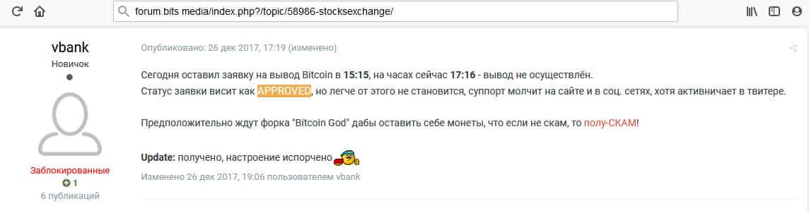 - Клиент 3 дня не мог вывести свои деньги из говнообменника Stocks Exchange