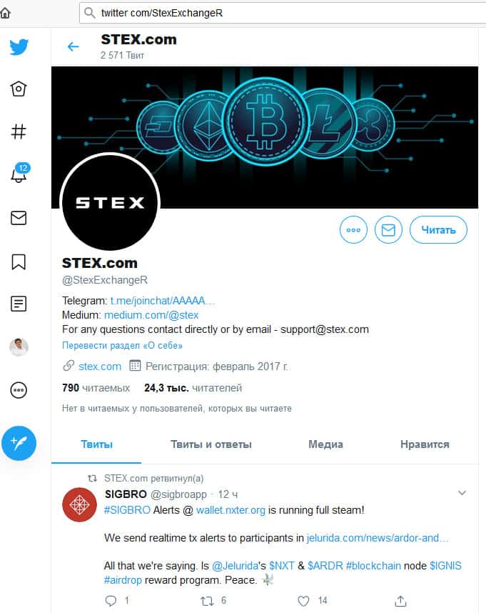 - группа мошенников в социальной сети Twitter twitter com/StexExchangeR