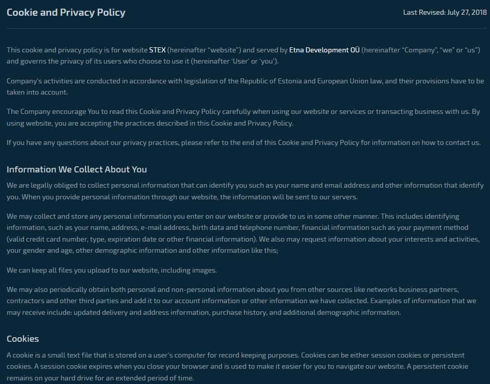 - Что можно сказать о политике конфиденциальности Stocks Exchange?