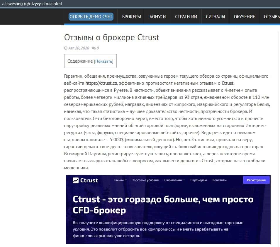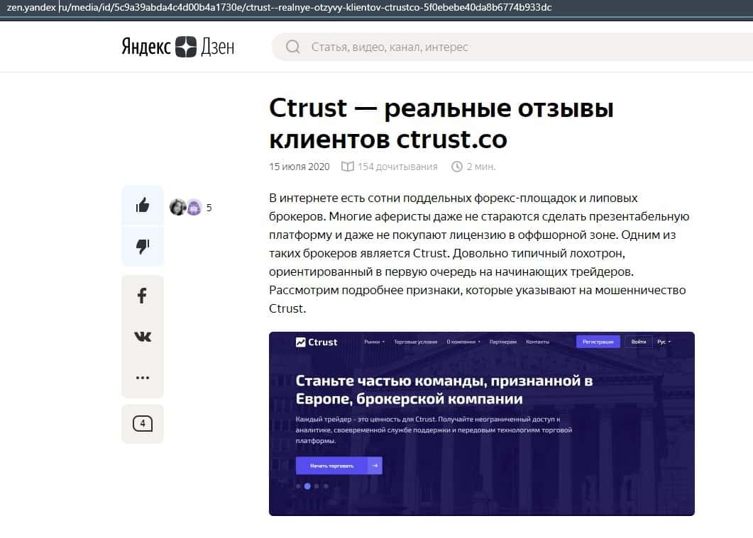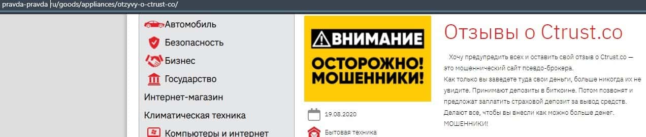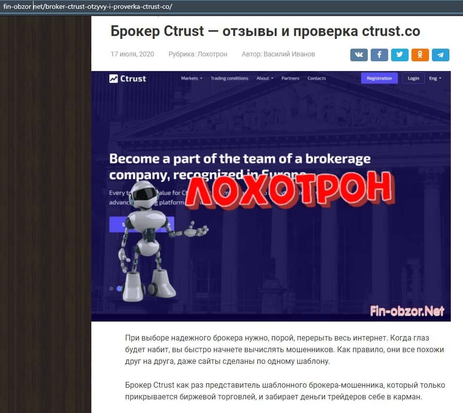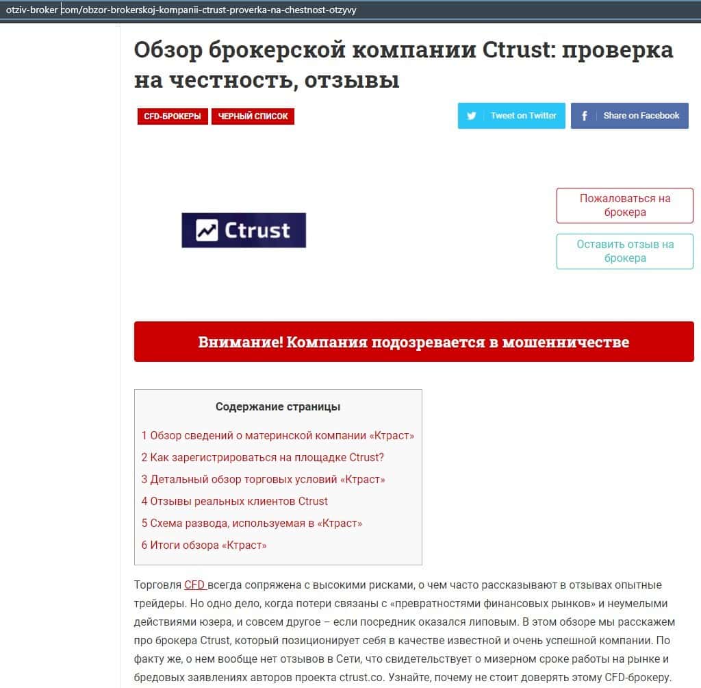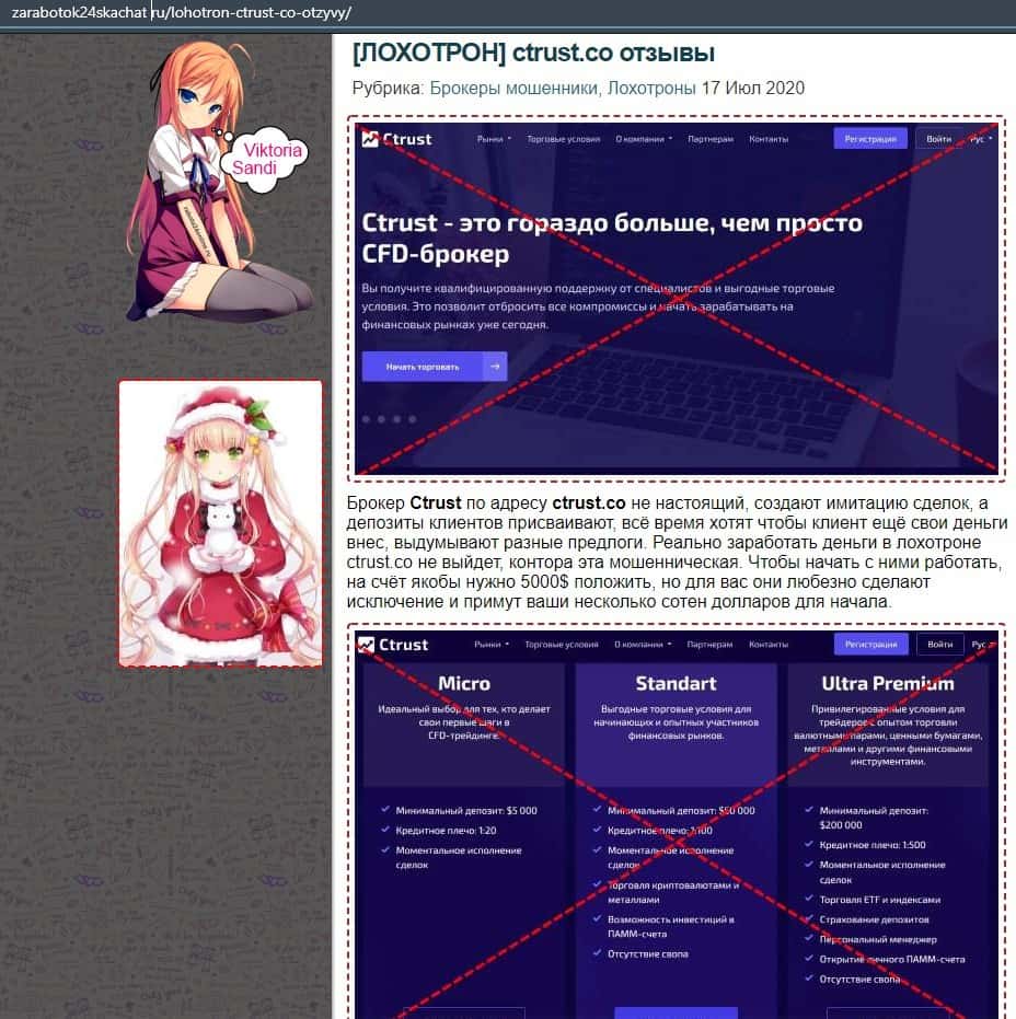 Ниже представлена публикация для ознакомления с мошенническим брокером CTrust Co, который обманом затягивает якобы на рынок Форекс и выманивает с людей последние деньги.