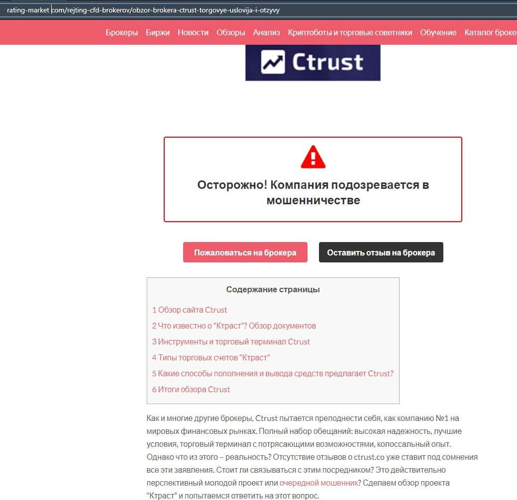 В черном списке еще одно ресурса также была найдена контора CTrust Co. Мошенники не являются никаким брокером, как они пишут на свой сайте, а попросту воруют деньги у клиентов.
