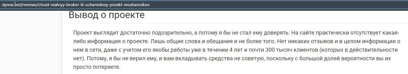В выводе к статье о мошеннической конторе СТраст указано, что данная шарага выглядит довольно подозрительно и подозрения легко доказать, опираясь на отзывы реальных людей.