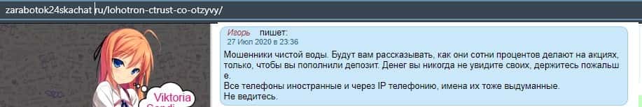 В данном отзыве клиент опубликовал информацию касательно сайта лохотрона СТраст. Он призывает пожаловаться в службу поддержки специального хостинга, где размещен их ресурс.