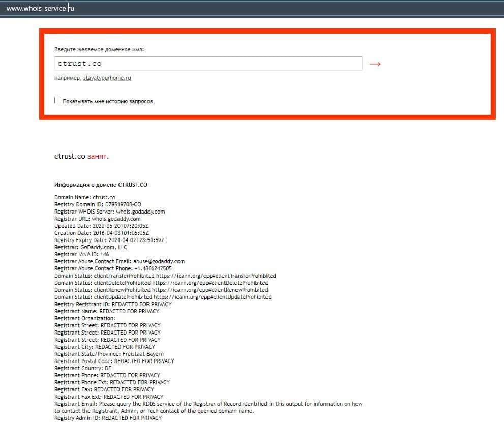 Исходя из проведенного анализа касательно домена ctrust co, его владельца можно было определить и им оказалось некое ООО, которое зарегистрировано на территории Германии.