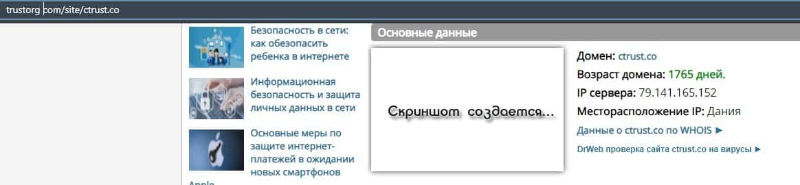 Домен брокерской форекс-конторы СТраст - ctrust co имеет возраст в 1765 дней на момент написания данной статьи, поэтому можно сразу сказать, что жулики его купили за деньги.