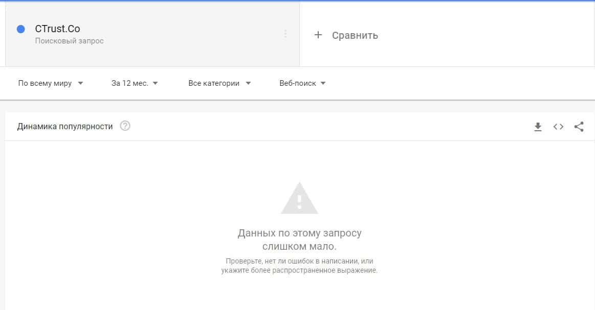 Бренд сайта "ctrust.co" все-таки ищется в поисковой системе Гугл не было совершено ни одного запросов за последний месяц, что говорит о его низкой популярности.