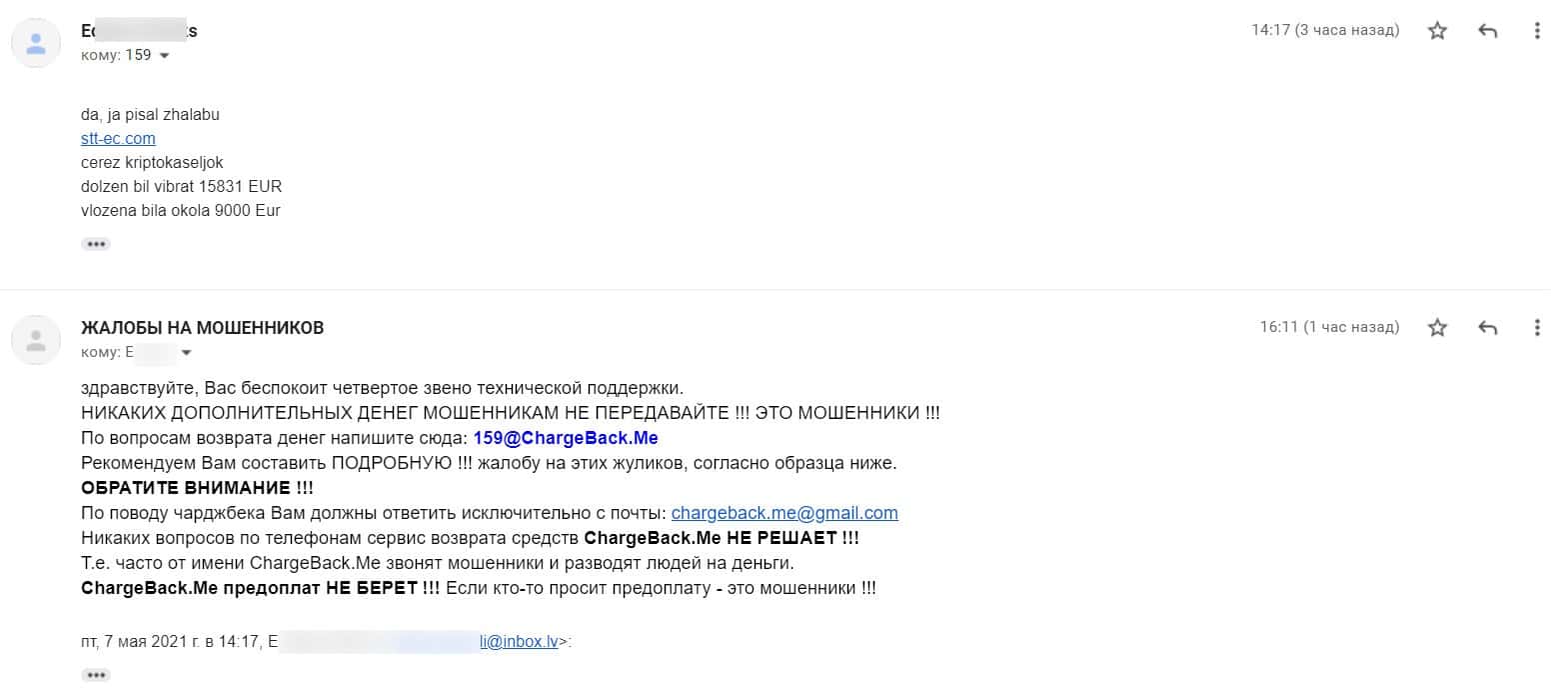 В том случае если бесстыжие лохотронщики СТТ ЕС Вас ограбили или пытались это сделать, то сообщите e-mail ниже, и мы в обязательном порядке с Вами установим контакт по электронной почте.