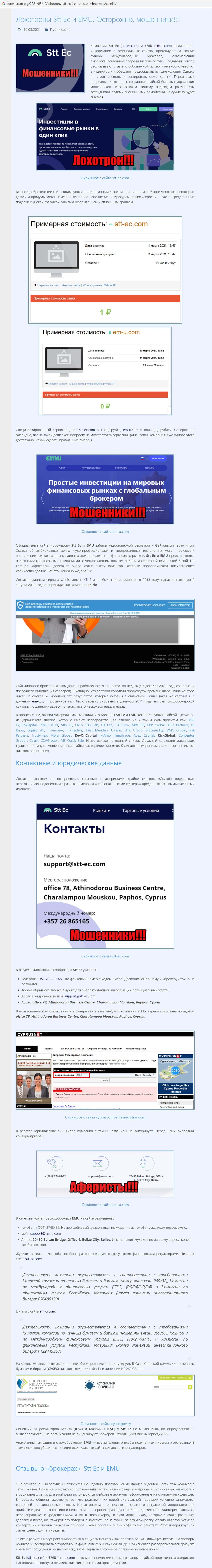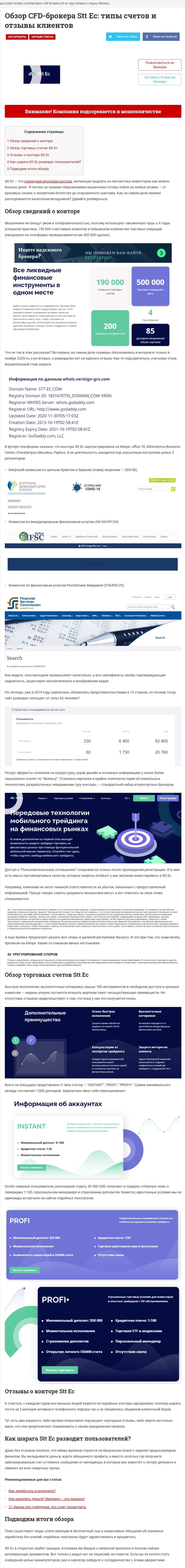 Обзорные статьи о брокере STT EC, разоблачающие его