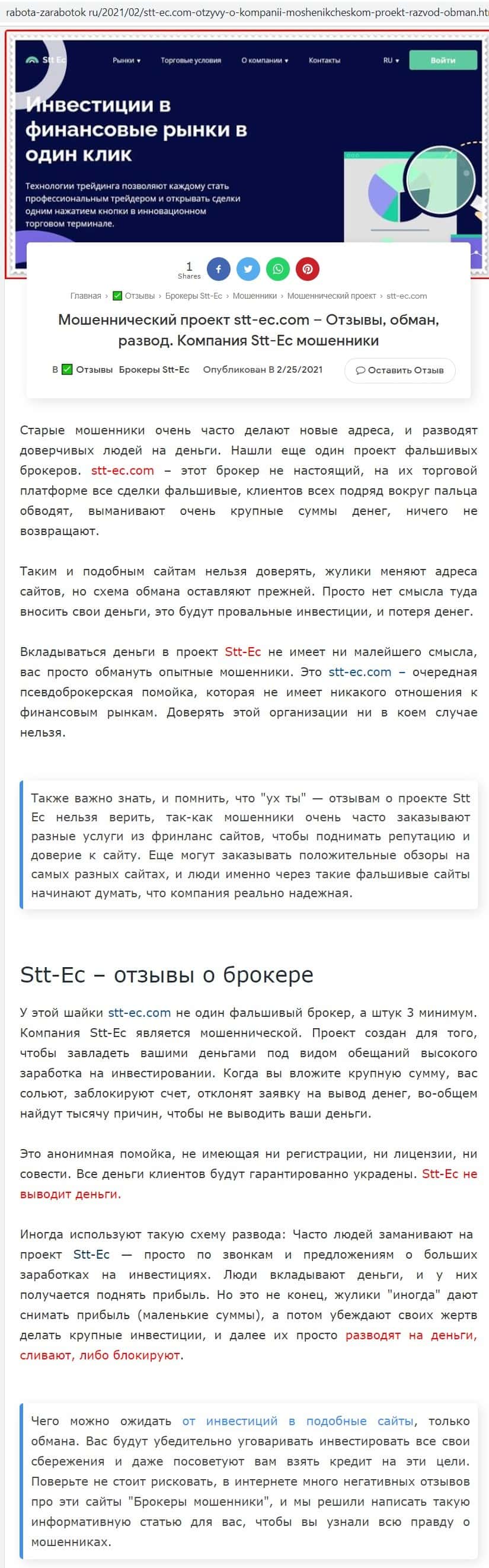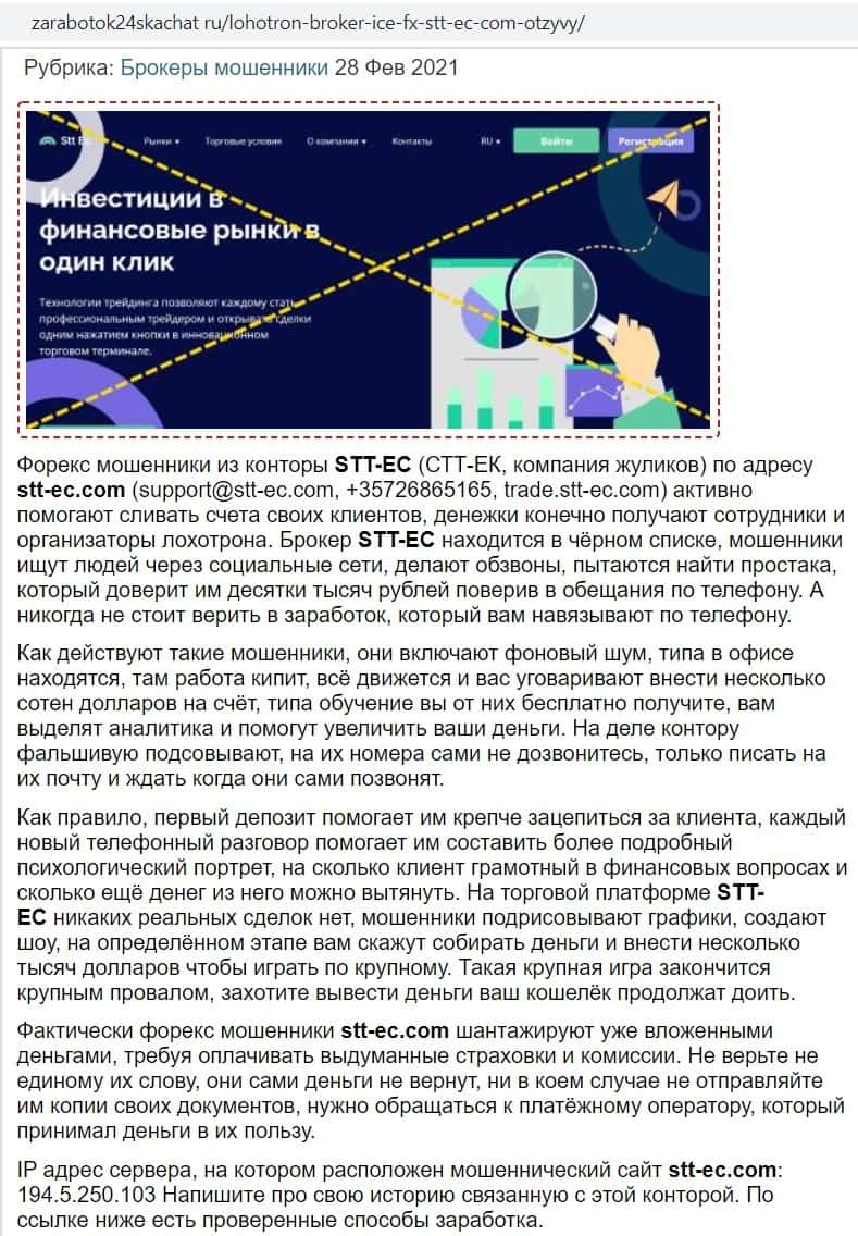 - Обзорные статьи о брокере STT EC, разоблачающие его