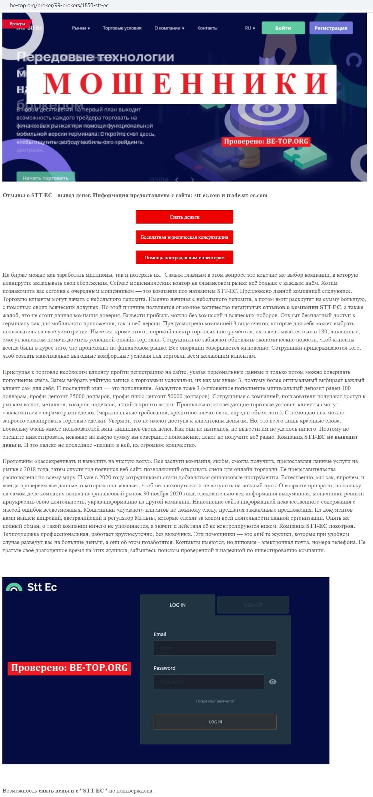 Авторы материала на сайте be-top org о брокерской компании STT EC считают эту контору очень ненадежной, поэтому не стоит вкладывать деньги на их сайте, чтобы не лишиться их.