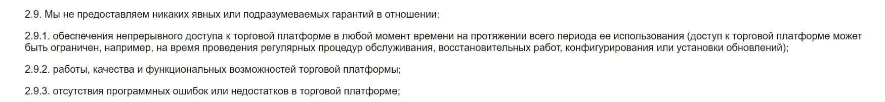Пунктом 2.9 своего клиентского соглашения компания STT EC уведомляет, что не несет ответственности за качество работы своей платформы, а также, технические сбои.