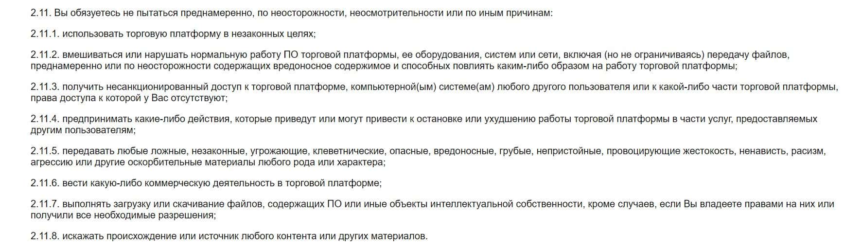 В пункте 2.11 брокер STT EC предупреждает пользователей о том, что они ответственны за многие действия на их платформе, поэтому его надо изучить очень внимательно.