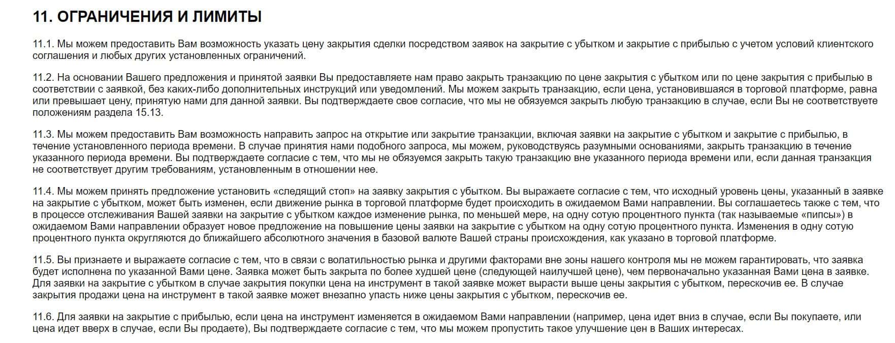 Прочитав раздел 11 клиентского соглашения компании STT EC, пользователь может узнать обо всех ограничениях, которые налагает на него брокер.