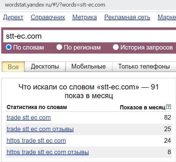 - Показатели сайта черного брокера СТТ ЕС