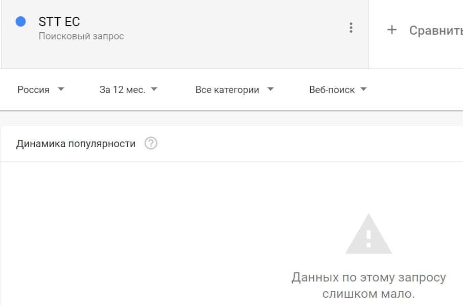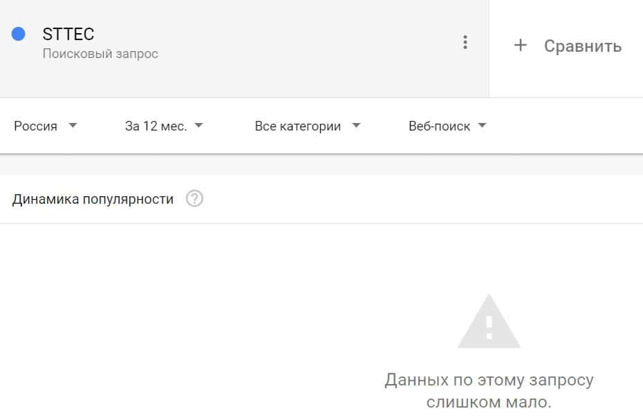 Проверка по названию бренда на английском языке с пробелом "STT EC" дала следующий результат: компанию искали крайне редко.